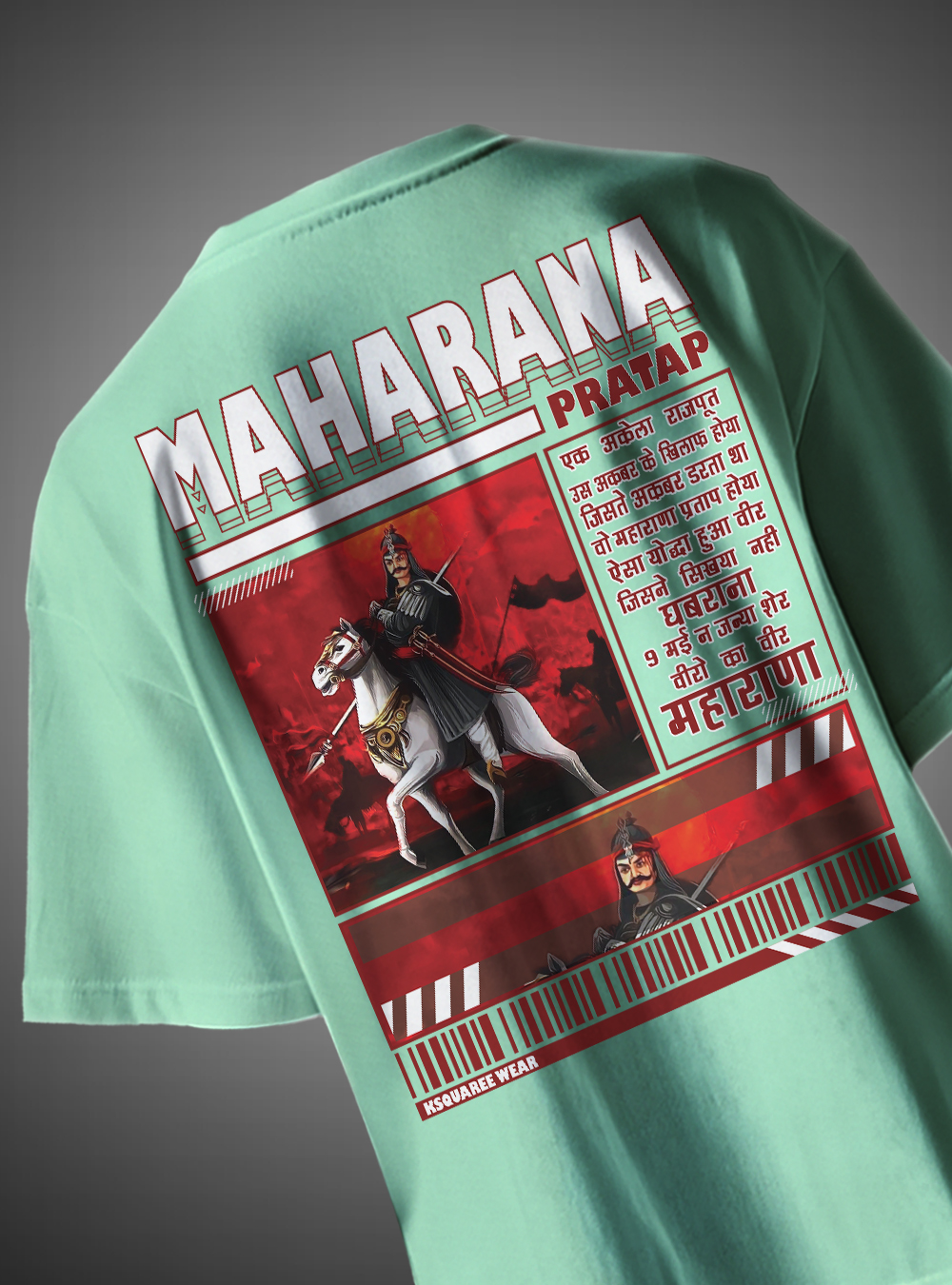 Maharana Pratap Rajputana Oversized T-Shirt with bold warrior design. Premium streetwear showcasing Rajput pride by KSquaree.